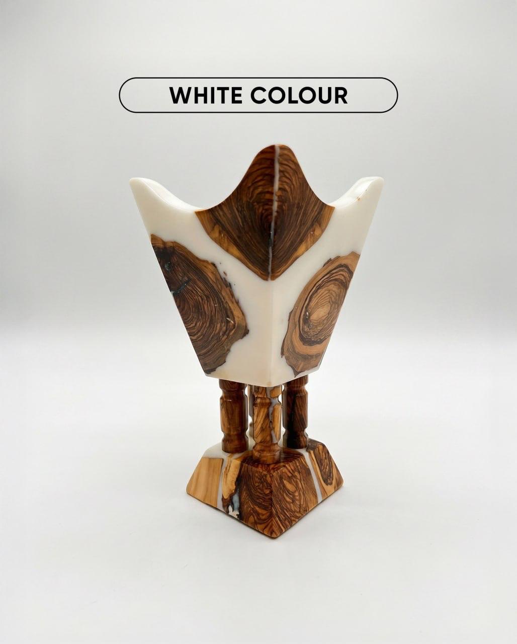 مبخرة مصنوع من خشب الزيتون الطبيعي مع الإيبوكسي. تتميز بعروق خشبية فريدة ولمسة عصرية أنيقة بجودة عالية قياس 23 CM.
